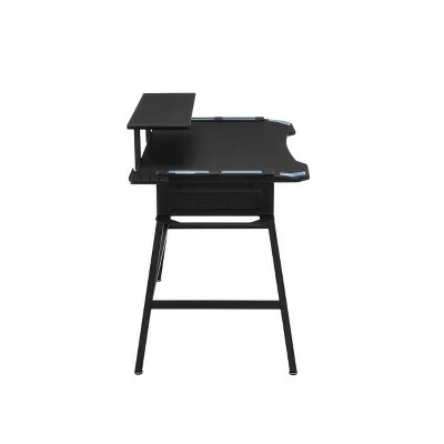 - Gaming desk holds up to 200 lb and usable desk space measures 42″ L x 23.625” D x 26.5” H and total dimensions, including accessories, is 52.625″ L x 23.625” D x 34.625” H