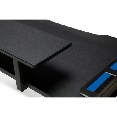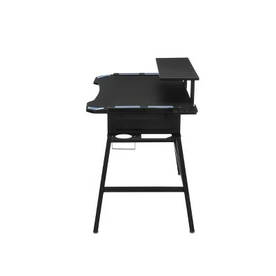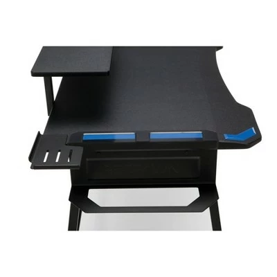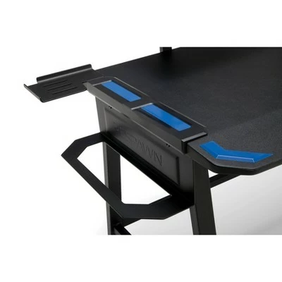 Climb to the top of the leaderboard while seated comfortably at the RESPAWN® 1010 Gaming Computer Desk, in Blue. The ergonomic back-mounted monitor shelf keeps the play at eye level to reduce head and neck fatigue while the contoured table top reduces arm and mid-back stress. Speaker and headphone solutions are placed at the sides of the desk to maximize work space, along with a cup holder to keep your drinks secure and away from your equipment. An award-nominated brand, RESPAWN is committed to your satisfaction and covers this desk with our RESPAWN 5-Year Limited Warranty. This gaming desk is so versatile it can seamlessly take you from workstation to battle station. This gaming desk completes your battle station and helps you level up.