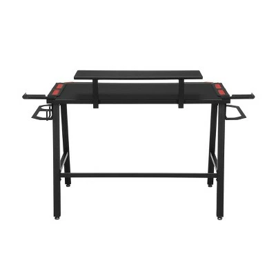 - Gaming desk holds up to 200 lb and usable desk space measures 42″ L x 23.625” D x 26.5” H and total dimensions, including accessories, is 52.625″ L x 23.625” D x 34.625” H