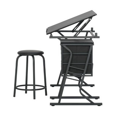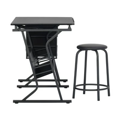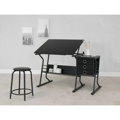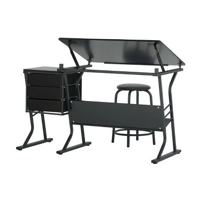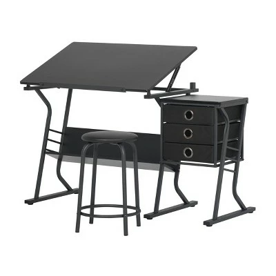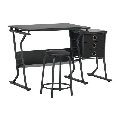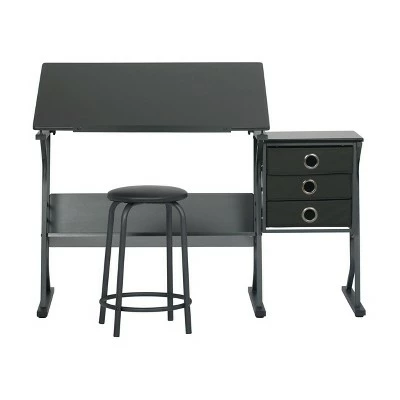 This 2pc Canvas & Color Craft Center with Stool from Studio Designs provides a comfortable work space and keeps your craft supplies easily accessible. The table top tilts up and includes a pencil ledge that slides up and locks into place when needed. The set also features three storage drawers and a high padded stool to keep you sitting comfortably through crafting or working.