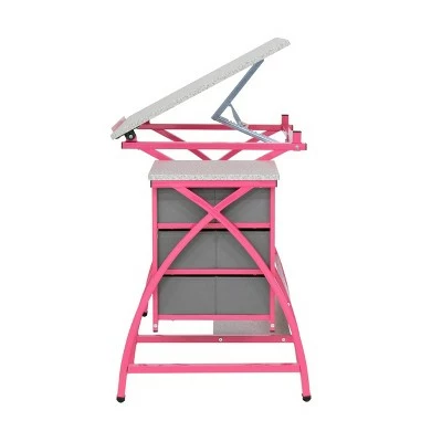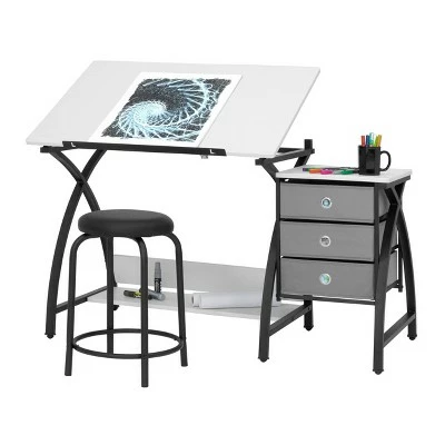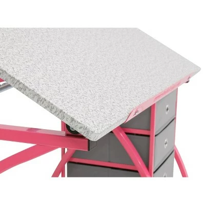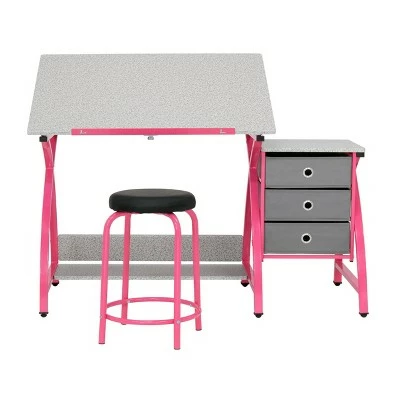 The 2pc. Canvas & ColorAjustable Craft Table with Stool by Studio Designs provides a comfortable work space and keeps your supplies easily accessible no matter what you’re crafting up. The tabletop is adjustable and includes a pencil ledge that slides up and locks into place when needed. This set also features three adjacent storage drawers for all of your accessories and a padded stool to keep you sitting comfortably.