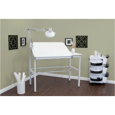 You’ll be ready when inspiration striking with the Canvas & Color Split Top Workstation from Studio Designs. This drafting table can be adjusted, and the tabletop can be angled for you to find the most comfortable position to complete your work. Set your paints on the stationary spot and angle the adjustable tabletop for the just-right work surface to create your next masterpiece.
