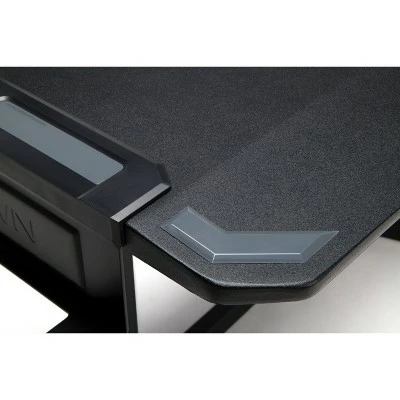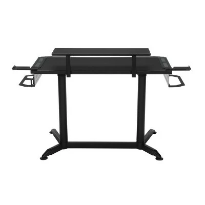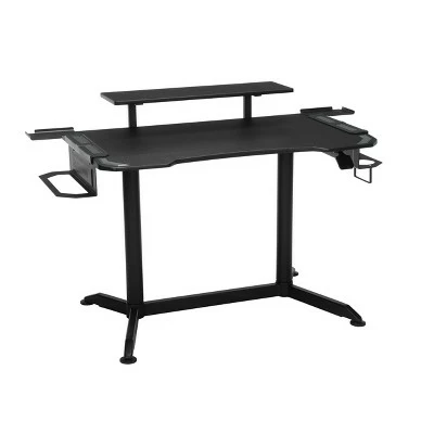 - Gaming desk holds up to 200 lb and measures 52.625″ L x 23.625″ D x 33.5″ – 49.5″ H