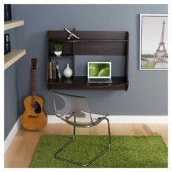 Upgrade your living room, bedroom, kitchen, or office with this floating wall-mounted desk and chalkboard. Made from eco-friendly engineered wood, this clean-lined, elegant piece effortlessly blends with any décor. The chalkboard front is great for leaving messages, or jotting notes, while the inside work surface will accommodate your laptop, notebooks, and more!