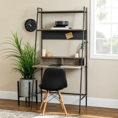 Can’t decide between a new desk or bookshelf? Now you don’t have to! Try out Saracina Home’s 36” Writing Desk with Open Storage Bookshelf. It’s the best of both worlds with its intelligent design. On days you need a workspace, utilize the open desk for projects. When not in use, let your workstation double as a chic home office or living room bookcase. Its sturdy powder-coated steel frame and long-lasting MDF wood core are sure to offer plenty of mileage. A wall anchor keeps the unit safe and in place, while its leaning ladder silhouette keeps your sophisticated style top-notch. Tie your home together by pairing this workstation with other matching pieces from the Sophia collection.