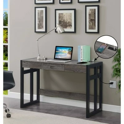 Give your workspace a stylish upgrade with the Monterey 47 Inch Desk with Charging Station by Breighton Home. This Modern design boasts a spacious surface that offers plenty of room for a computer; notebook; and cup of coffee. The charging station conveniently located on the desktop includes two standard outlets and two USB ports which can charge a phone; tablet; laptop and more. The power supply cord is 6 feet in length giving this desk the flexibility needed when it comes to placement. Also featuring a single sliding drawer; offering plenty of room to store office essentials. This stylish design is crafted from particle board and melamine for long term durability. Shop additional pieces from the Monterey Collection by Breighton Home; each sold separately.