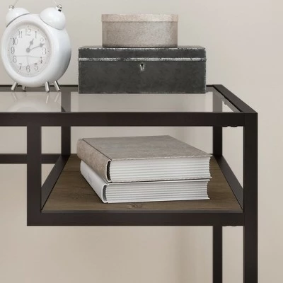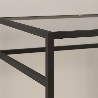 By combining a trio of distinct materials into an industrial modern design, the Bush Furniture Anthropology 48W Glass Top Writing Desk offers a unique workspace solution that’s equal parts style, function and durability. A floating shelf sits beneath the glass surface to keep office supplies and work-in-progress close by while still allowing for plenty of leg room. An ideal choice for working in compact areas, the versatile 48W x 24D x 30H Desk design can also serve as a sofa table, console table or entryway table and is finished on all sides to look great facing any direction. Sturdy metal framework supports the glass desktop for a weight capacity of 150 pounds and provides a perfect complement to the shelf’s Rustic Brown finish for an on-trend reclaimed appearance. This glass computer desk with storage is tested to meet ANSI/SOHO quality standards for safety and performance and is backed by the Bush Furniture 1 Year Manufacturer’s Warranty. See the Anthropology Collection’s full range of home furnishings to expand your living space with modern industrial style.