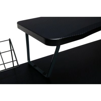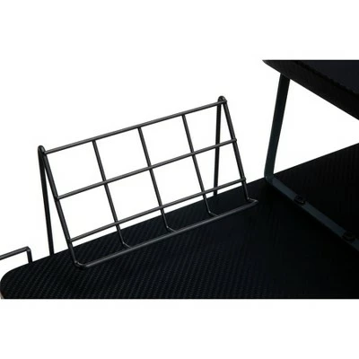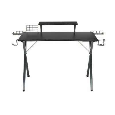 This gaming computer desk was built with a gamer’s needs in mind but is perfect for home or work. The Essentials Collection 55″ Gaming Computer Desk, 35″ Monitor Shelf, X-Base, in Gray/Black, features a durable heavy-duty carbon fiber thermoformed PVC wrap that is as durable as it is edgy. The raised monitor shelf keeps the game action at eye level and can hold a monitor up to 35″ wide and 40 lb. A standard sized keyboard fits neatly beneath the monitor shelf, providing a clutter-free desk surface. The desk’s tapered edge provides much-needed pressure reduction to reduce forearm fatigue from hours of playing or working. Solutions for your headphones, speakers, and beverages keep your most important gaming accessories within arm’s reach and off of the desktop while pre-drilled holes, tapped with metal inserts for durability, allow you to choose accessory placement to truly customize your desk. A wire management tray, at the back of the desk, can hold a power strip and funnel cords for a visually clean solution. The gaming computer desk features an X-base frame for stability. The desk has height adjustable glides to manage unlevel flooring, holds 200 lb, and is backed by the OFM Essentials 5-Year Limited Warranty. Complete your battlestation with a matching Essentials Collection gaming chair!