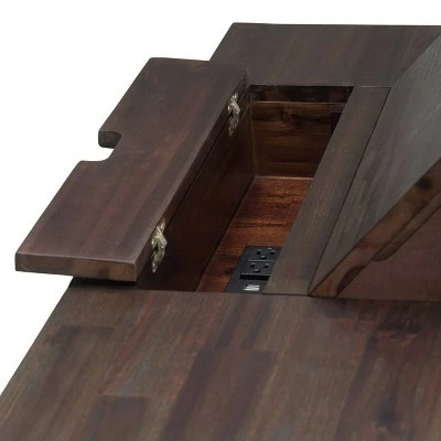 Combine rustic contemporary style and function with the Garret Desk. This desk is crafted of solid Acacia. Generous in size, this desk offers a spacious top surface and includes a USB and power outlet for added convenience. Lift up top provides plenty of space for your laptop, tablet or small office supplies. It is a versatile and stylish addition to your home or office work space.