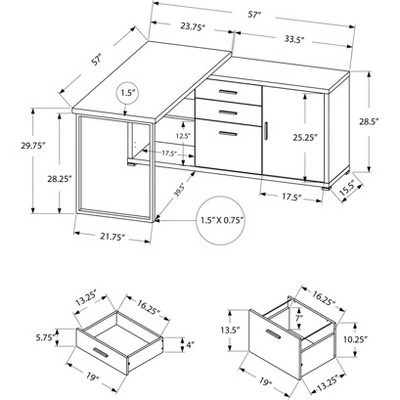- Dimensions (Overall): 29.75 Inches (H) x 57 Inches (W) x 57 Inches (D)