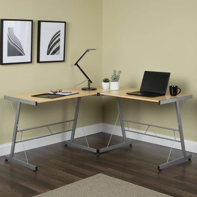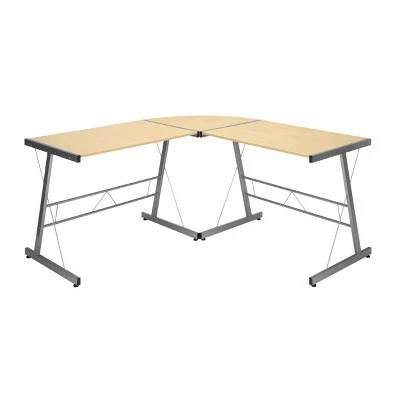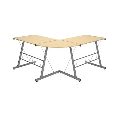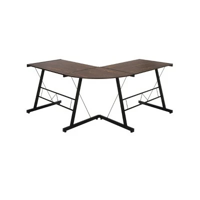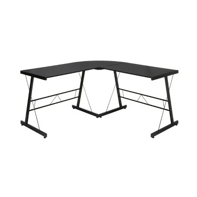 The OFM Essentials Collection is where quality meets value. This industrial modern 60″ L-Shaped Desk, Corner Computer Desk, in Black, is perfect for smaller office spaces and home offices. Featuring a particle board core surrounded by high-quality melamine laminate, the 3/4″ thick woodgrain top will wear well and compliment your decor. The desk’s accent metal legs have a powder coated paint finish, in Black, for durability and adjustable glides for easy surface leveling. The desk is 60” L x 23.625” D Left – 60” L x 23.625” D Right – 29” H.