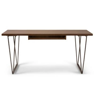 Combine industrial, contemporary style and function with the Travis Desk. This desk is crafted of solid wood with an unique V design metal base and legs. Generous in size, this steam lined desk offers a spacious top surface and includes a keyboard tray for added convenience.