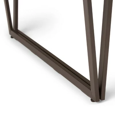 - Modern, Industrial design includes powder coated graphite gray V design metal base and legs