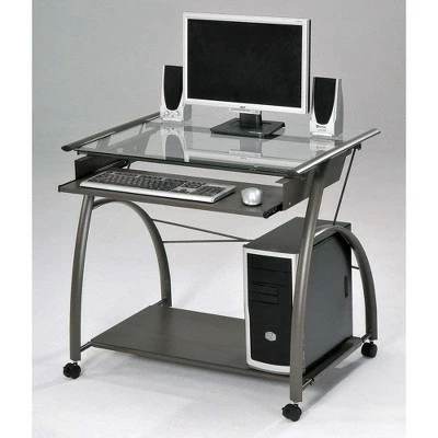 Transform any preexisting space in your home into a new-age office space with the ACME Furniture Vincent Contemporary Metal Home Work Office Computer Desk.Ditch that old, wooden desk and upgrade to something with a modern finish. This desk is equipped with a pull-out metal keyboard and a pewter finish that really brings this desk to the forefront of modern design. With a bottom shelf, you’ll have ample room to store your most important office gear and larger tech items while still having ample foot room.The table top part of this desk is finished with a clear glass top to create a sleek modern feel to your home office. It also includes caster wheels that lock in place and make transporting this desk a breeze. Its compact design is sure to add to your office without taking up too much space. Take your home office to new heights with the ACME Furniture Vincent Contemporary Metal Home Work Office Computer Desk.