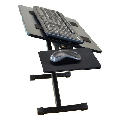 Need to raise computer keyboards to a comfortable standing height? Finally, there’s an affordable, truly ergonomic standing keyboard riser. Rest KT3 on your desk (there’s no assembly or installation) and quickly adjust the keyboard panel to the proper height (about elbow level). Yes, you can adjust the panel tilt for a negative wrist angle and don’t worry, the always-level mouse pad will remain parallel to your desk even if you’re typing with a negative tilt. Non-skid strips keep keyboards in place. Simple, easy, effective. It’s never been easier to stand up and type comfortably thanks to the ergonomic KT3 computer keyboard stand.