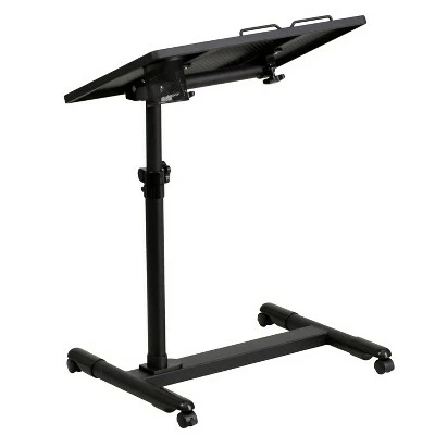 Get moving…or stay put on this mobile computer desk with adjusting capabilities. No need to purchase a cooling pad, the perforated surface allows your laptop to cool down with proper air circulation. Top swivels a full 360 degree, tilts and has a top and bottom lip to prevent papers from falling. The height adjustable frame allow user to adjust the table to their height preference. This computer stand will serve as a great option for arts and crafts.