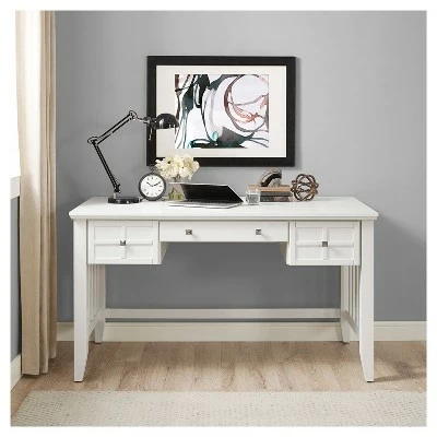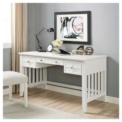 Settle in to the Alder Computer Desk by Crosley. Inspired by the historic mission design of the west, this desk’s clean lines and smooth surfaces provide a great desktop and great storage in one piece. Slide out the keyboard drawer for tidy typing, and use the lower gliding drawers to keep clutter at bay so nothing will spoil your style.
