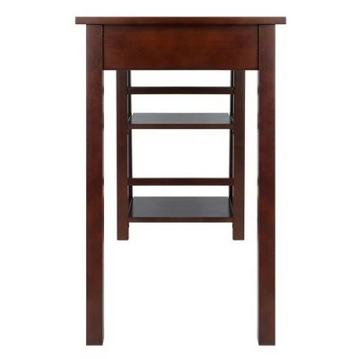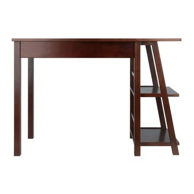The Winsome Wood Aldric Writing Desk is the ideal home office desk for apartment living or smaller spaces. The desktop is wide enough for a computer monitor, speakers, and many of your working files, holding up to 70lbs and at only 20″” won’t overwhelm a room. This versatile desk features two spacious built in shelves on the side. Students will appreciate the angled bookshelf for textbooks, binders, and electronic devices. Or tuck the desk into a kitchen alcove, using the shelves for cookbooks, and have a convenient place to use your laptop while dinner is on the stove. The side shelves have ample clearance for file holders or large books and a weight capacity of 20lbs each. A center drawer keeps smaller office items or must have accessories within easy reach. Constructed of solid and composite wood in a rich Walnut finish that will mesh well with most home decor. Conveniently packed and shipped in 1 box, that includes the hardware necessary for assembling. Replacement part request can be submitted directly to the manufacturer within 60 days from date of purchase.