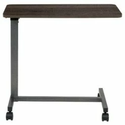 It features a cherry laminate, rectangular shaped, tilting work surface with a built-in wrist rest and a side table for your mousepad or other materials. The pewter finished frame is height adjustable to allow you to use it while sitting down or standing up. You can raise the desktop from 28.5″ – 38.5″, using knobs on the side of the frame. The heavy-duty, nylon base with dual wheel casters makes it easy to roll across the floor.