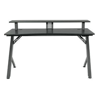 Level up to your optimum game setup. The area51 battle station gaming desk offers the competitive platform your high-octane gaming demands. Raised monitor shelf provides ideal viewing height, reducing neck, shoulder and eye fatigue. Customize the location of your power up preferences with our magnetic 3-port smart power USB hub. Enjoy total game immersion with blue tooth RGB LED lights that alert you for quick response. Our power strip bracket and cable management system offers a seamless transition from gaming to workstation to make this your premium media hub. Compelling Z frame design and sturdy steel construction in exciting red with matte black game surface will provide years of competitive enjoyment.