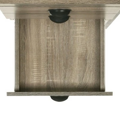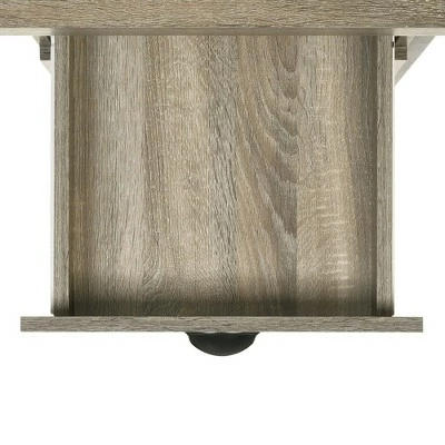 The Picket House Furnishings Ashby Desk is a exemplary blend of when industrial meets contemporary. Expertly crafted of sturdy mdf, metal, and paper veneer. Finished in weathered Gray with wood grain detailing throughout and accented by a black metal frame. It features unique black hooded pulls and three commodious drawers. The drawers can be used to store office supplies, work, crafting supplies, and much more. Plenty of space for working from home, studying, or crafting.