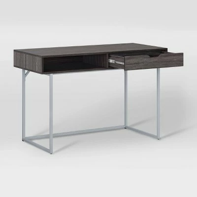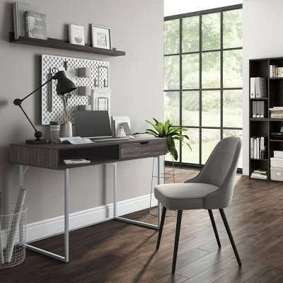 Zoom calls are a breeze when seated at the Auston single drawer desk. Providing a spacious worktop that can fit large monitors, notepads, and many more office essentials. The desk is supported by silver coated steel legs and cable management is found on the desktop to keep wires organized. Finished off with a sleek cubby for quick access, and a closed compartment to hide away unnecessary items, It’s the perfect addition to any office.