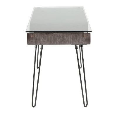 Looking sharp, LumiSource Avery Desk’s smooth, bent wood curves are a showstopper from any angle. This stylish piece will set your office apart in the most novel way. Featuring hairpin legs, a bent wood nook, and clear tempered glass top, this desk is great for any MId-Century Modern inspired space.