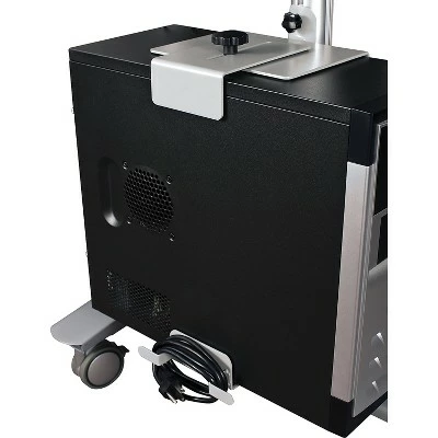 - Gray. Easily moves through small doorways and over thresholds for collaborative meetings. Allows up to 35º of tilt, and 25º of pan adjustment. All shelves feature non-slip EVA pads.
