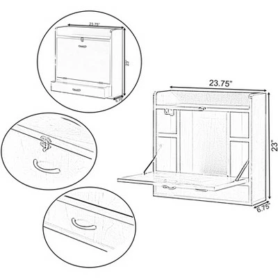 Maximize your home office space and functionality with the Wall Mounted Office Desk. This clever storage solution packs in a spacious desktop, six storage shelves and a pull out drawer, all within a sleek wall mounted cabinet that folds up when not in use. Made with durable material, the folding desk is durable, sturdy, and easy to clean. Everything you need for assembly and installation is included, and the assembly guide makes it easy to set up. A built in latch keeps the tabletop in place when folded up, so it can be safely closed. Its compact size is perfect for home office, study, or makeup storage desk.