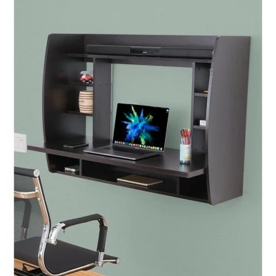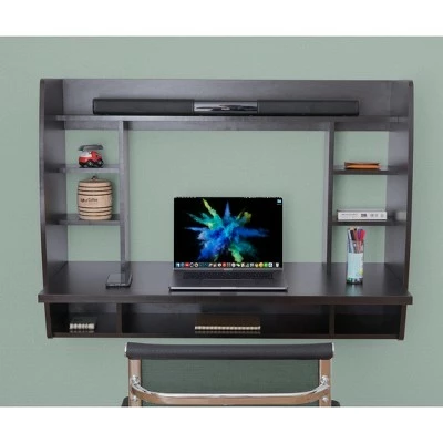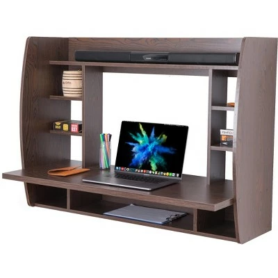 Create the perfect desk area with this wall mounted laptop desk. Plenty of shelves provides extra surface space to store office items and trinket display. Composed out of durable wood, this desk offers a sturdy base to hold office essentials neat and organized. Practical working spaces start with this wall mounted desk.