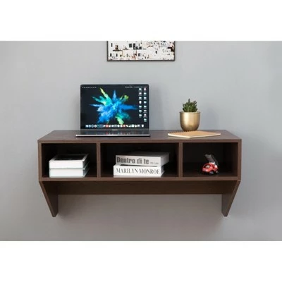 Create the perfect desk area with this wall mounted computer desk and cabinet, which is very suitable for study, bedroom, and office. This desk offers a sturdy base to hold office essentials neat and organized. Three open compartments below the desk provide plentiful storage to keep personal items handy. This wall mounted computer cabinet is perfect for storing your computer. Two open side compartments and cabinet in the center provide ample storage space. Enjoy an organized office in your own home!