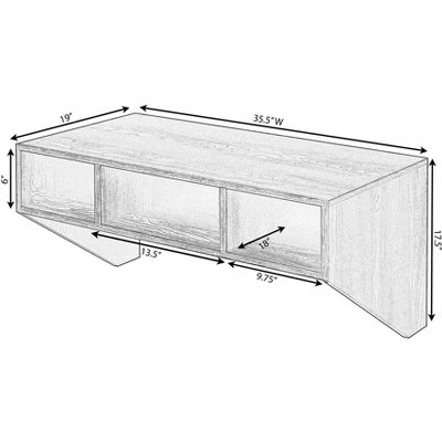 - Size: Desk- 35.5″ W x 19″ D x 17.5″ H, Hutch- 35.5″ W x 11.75″ D x 12.75″ H