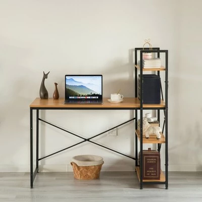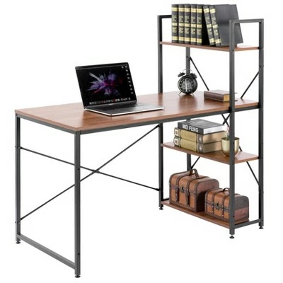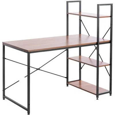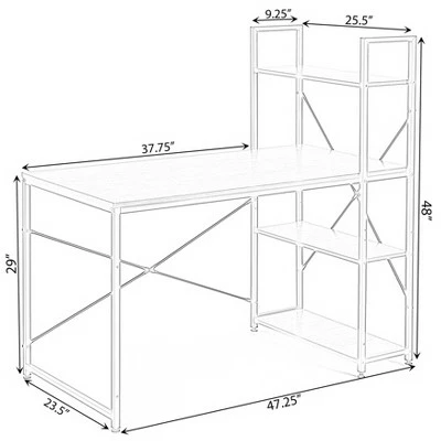 Create the perfect desk area with this computer office desk. Industrial and modern design fits into any style room dcor. Spacious desktop provides plenty of workspace for your laptop, notebooks, and other office supplies. Additionally includes three side storage shelves to keep office supplies handy. Composed out of durable wood, this computer desk offers a sturdy base to hold office essentials neat and organized. Everything you need for assembly and installation is included, and the assembly guide makes it easy to set up.