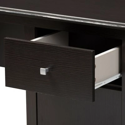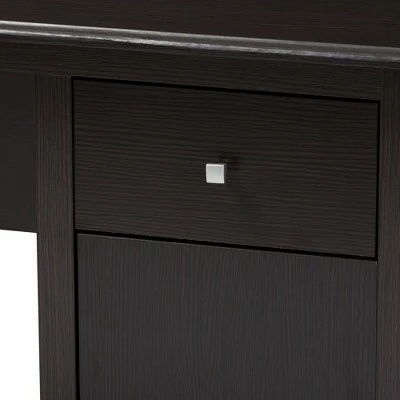 The practical, modern look of the Belora desk makes it an essential addition to your office. The modern and contemporary-inspired design is simple, sophisticated, and un-fussy. The Belora is finished in a wenge and has modern square knobs in a silver finish. The desk features a convenient pull out drawer on the right-hand side of the desk. Underneath the drawer, the Belora also features a storage compartment with a hinged door, perfect for books, files, or anything else that needs to stay organized. The practical, open workspace of the desk makes this an ideal addition to your private office, home office, den, or study. Made in Malaysia, the Belora requires assembly. Dimensions: 29.13″ High x 47.64″ Wide x 23.62″ Deep