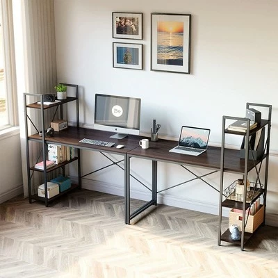 Create a functioning work environment in even the tiniest of spaces with the 47 Inch Computer Writing Desk from Bestier. This compact desk allows you to study, write, game, and more all while storing all your work essentials.This Bestier desk features a dark brown wood stain with black metal supports that looks clean and classic with any home decor. The desktop is over 3 feet long and 2 feet deep, providing ample space for a laptop, monitor, craft station, and more. The desk also features a 4-tiered shelving unit that can store all of your important work essentials or display photos and mementos. The shelf can be installed on either side of the desk to accommodate your space.This simple modern desk measures 47 inches wide and is suitable for small spaces including a home office, bedroom, apartment, or college dormitory. 2 metal crossbars keep the desk sturdy and wobble-free so you can depend on it for years to come. Adjustable feet protect your floor from being scratched and can also be adjusted to ensure the table is at the right height.Create your ideal workspace with the Bestier 47 Inch Computer Writing Desk.
