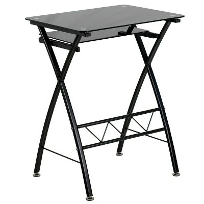 Don’t let that small space get you down and prevent you from being productive. This compact computer workstation will solve your needs when you’re low on space. This computer desk is perfect in the bedroom or living room. Setup your desktop or laptop and get your tasks done with efficiency. The keyboard tray can double as a place to store your writing materials and small devices while you’re working on your laptop. The tempered black glass desktop with the glossy metal frame adds a polished look, if you have to setup in your common area it’ll extend itself as a functional accent piece.