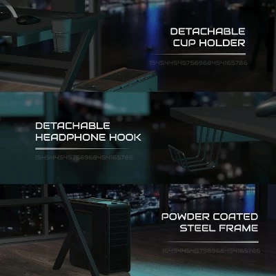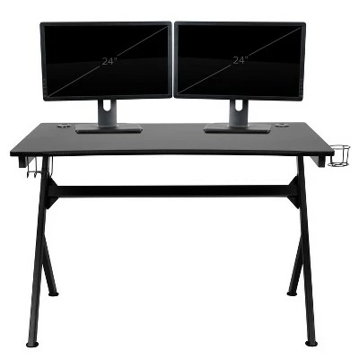 - Product Name: BlackArc Gaming Desk with Carbon Fiber Desktop, Steel Frame and Detachable Cupholder/Headphone Hook, Two Cable Management Holes