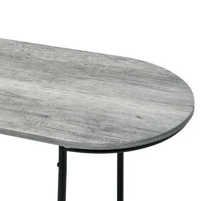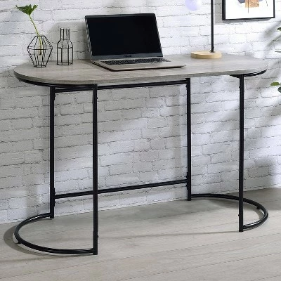 Make your workspace a place to be proud of with this charming industrial-influenced writing desk. Its oval profile sets it apart, creating a bold visual with a matte black finish metal base topped with a gray-toned, walnut wood finish that lends a touch of rustic character. This impressive writing desk is just the right size for working or schooling from home and it works in a wide range of spaces and styles.