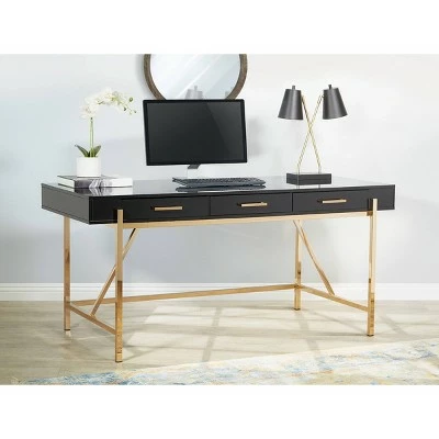 Create the chic workspace of your dreams with our beautiful Broadway desk by OSP Home Furnishings. This stunning high-gloss, white desk combines elegant warm gold detailing with attractive, classic lines for a fresh, modern and sophisticated feel. Designed perfectly for inspiring creativity and productivity all day long. Three ample storage drawers allow plenty of room for your pens, paper and other office supplies. Get the upscale home office you’ve been craving with the Broadway Desk.
