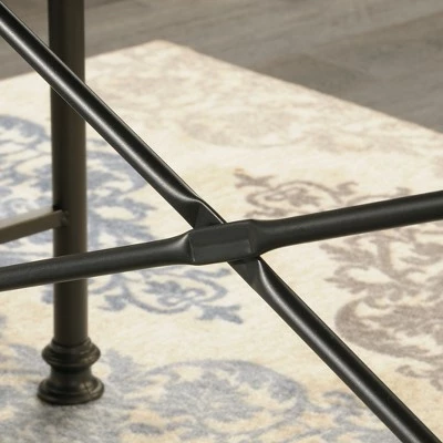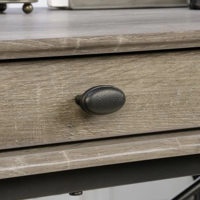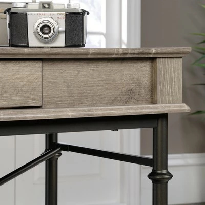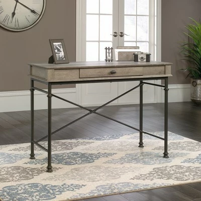 Add some gritty but charming inspiration to your home office or workspace with this console desk from the Canal Street collection. Its spacious tabletop provides you with room for all your office essentials. It also features a drawer with a flip down front and full extension slides for extra storage space. Finished on all sides in Northern Oak with a decorative, powder-coated metal frame, this industrial age inspired desk is ready to work for you.
