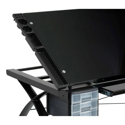 No matter what you’re crafting up, let this Canvas & Color Adjustable Craft Station from Studio Designs meet your every creative need. The large work surface is great for drafting, drawing or crafting, and the table top adjusts so you get just the right angle. It features a large pencil drawer, side drawers to keep all of your supplies on hand and storage space at the top for quick access to the tools you use most. This craft desk will give you versatile use through all of your projects.
