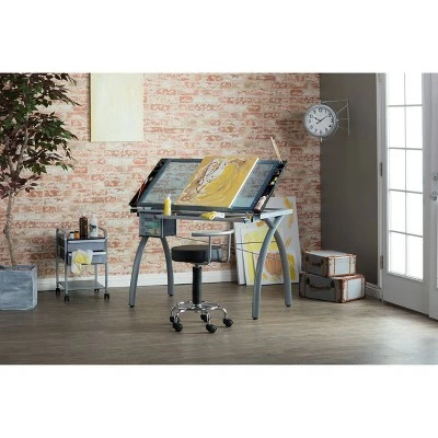 No matter what you’re crafting up, let this Canvas & Color Adjustable Craft Station from Studio Designs meet your every creative need. The large work surface is great for drafting, drawing or crafting, and the table top adjusts so you get just the right angle. It features a large pencil drawer, side drawers to keep all of your supplies on hand and storage space at the top for quick access to the tools you use most. This craft desk will give you versatile use through all of your projects.