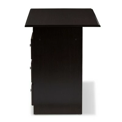 The Carine desk has a classic, modern look that looks right at home in your office. The modern and contemporary-inspired design is simple and sophisticated. The Carine is finished in a wenge and has modern square knobs in a silver finish. The desk features three convenient pull out drawers with a framed horizontal slatted design on their fronts. The Carine also features an open compartment on the right-hand side of the desk, perfect for extra storage or managing cables. The practical, open workspace of the desk makes this an ideal addition to your private office, home office, den, or study. Made in Malaysia, the Carine requires assembly. Dimensions: 29.13″ High x 47.64″ Wide x 23.62″ Deep