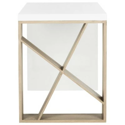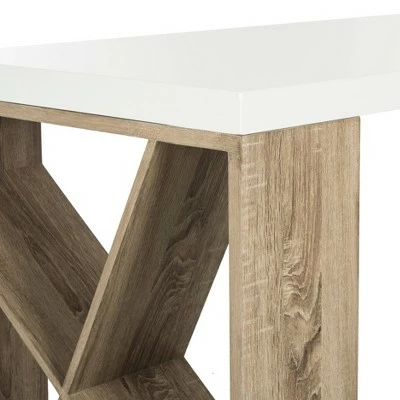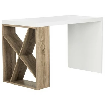 - Contemporary desk with a crisscrossed design for storage