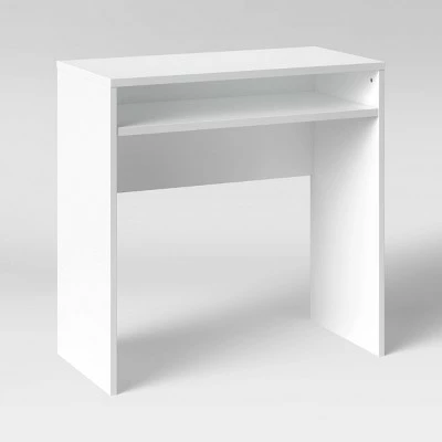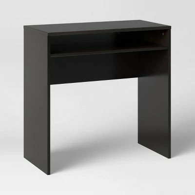 Give your office space an elegant look with this Compact Desk from Room Essentials™. This wooden desk showcases a rectangular design, making it perfect to place along the wall. The open shelf offers ample space and easy access to your files and other items. Great to pair with your existing decor style, this compact office desk is a perfect update your workspace.