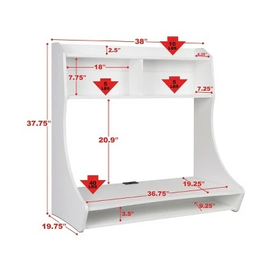Three shelves provide plenty of storage space for your collectibles, notebooks and electronic devices. The large work surface (37″W x 19.25″D) is the perfect spot for your computer while still providing ample room for your paperwork. Assembly and installation is a breeze with Prepac’s innovative and easy to install cleat system.