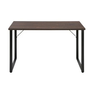 The OFM Essentials Collection is where quality meets value. This minimalist modern 48″ O-Frame Computer Desk, in Brown Ash, is perfect for small office spaces, home offices, and even for general home decor use. Featuring a particle board core surrounded by high-quality melamine laminate, the robust 1″ thick woodgrain top will wear well and compliment your decor. The desk’s accent metal O-frame legs have a powder coated paint finish, in Black, for durability and adjustable glides for easy surface leveling. The desk is 48″ long by 24″ deep and 29″ high.
