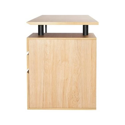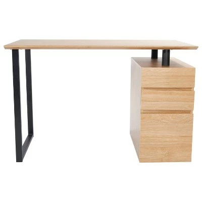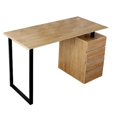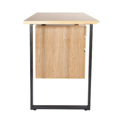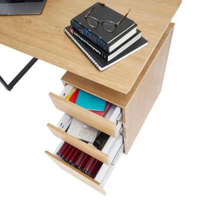 This Techni Mobili Computer Desk with Storage and File Cabinet balances a spacious work surface with ample storage in a contemporary design. Its MDF wood panels in pine color have a moisture resistant PVC laminate veneer, supported by a black powder coated steel frame. It features two storage drawers and a file cabinet for optimal organization. The modern design also includes under-desk storage space that is reversible and can be configured to your preference left or right hand. Desktop has a 110LBS Weight Capacity. Color: Pine