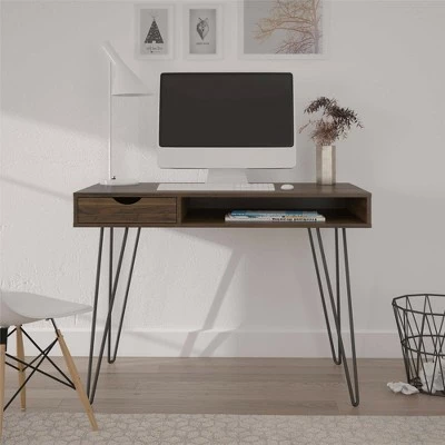 - Give your workspace a mid-century modern upgrade with the Novogratz Concord Computer Desk with Storage