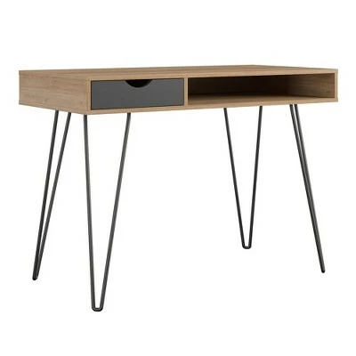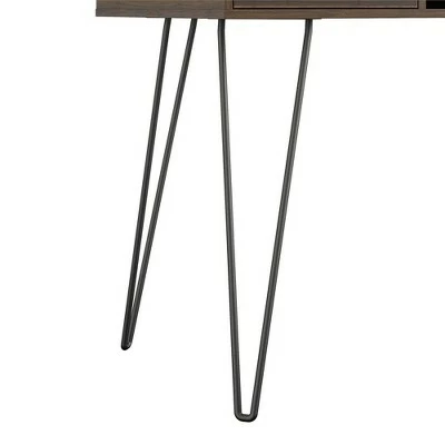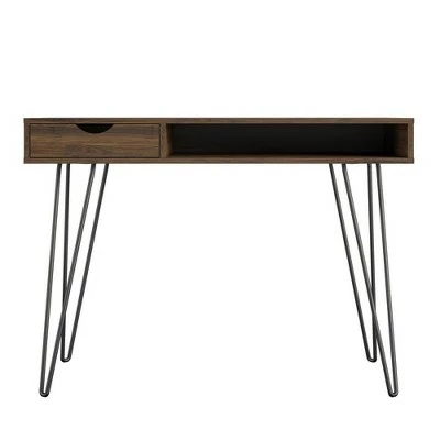- Made of laminated particleboard to offer a strong build that complements the mid-century inspired metal hairpin legs